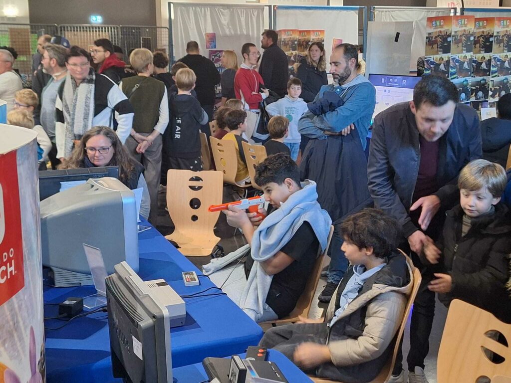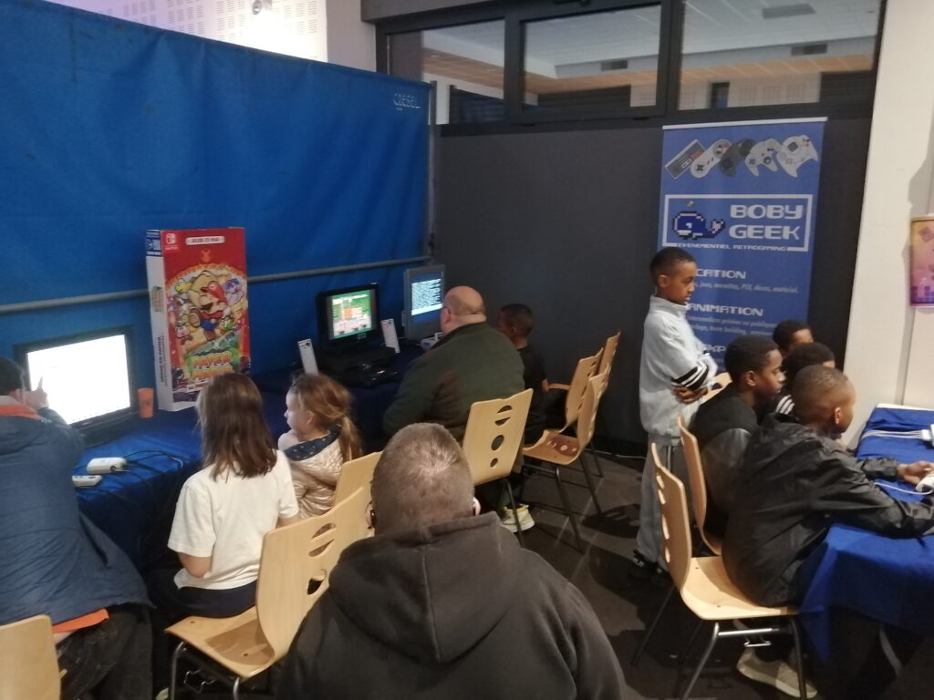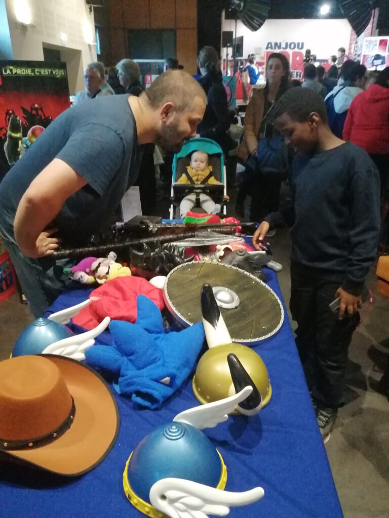 Il est toujours émouvant d’assister et participer à la première édition d’un événement… C’est une sorte d épisode « pilote », sur lequel plein de personnes bossent et s’investissent, sans trop maitriser les tenants et les aboutissants…cela demande un certain lâché prise, au sein d’une organisation bien bordée… Et bien déjà, je peux dire que ce Sablé Geek 2025 avait mis toutes les chances de son coté, tant d’un point de vue organisationnel, que logistique. J’en veux pour preuve, avec le nombreux personnel communal mis à disposition et déployé sous l’égide de Marie, la responsable enfance/jeunesse de la ville, mais également l’importante salle Madeleine Marie, désignée en tant que théâtre des réjouissances. La programmation aussi était ambitieuse. Cette nouvelle convention imaginée et organisée par les jeunes du CMJ de Sablé ne s’est pas improvisée sur un coin de table, 3 mois avant… non loin de là, elle a été murement méditée et scrupuleusement montée pièce par pièce par les jeunes, sous la supervision de Rabia leur encadrante, ce projet a eu une gestation de 2 ans ! Les CMJistes se sont d’abord mis d’accord sur le projet phare de leur mandature, ce qui a défini leurs objectifs et avec, les points clés de l’organisation de l’événement… pour cela, ils sont tout d’abord allés à la « pèche aux infos » et notamment en se rendant sur l’incontournable événement sarthois, le festival Geek Life du Mans. Puis les jeunes ont communiqué leur intention de créer ce « Rendez-vous Geek », dans le bulletin communal de Sablé et c’est grâce à ce dernier que j’ai pris connaissance de l’affaire. Ni une ni deux, étant moi même originaire de Sablé et ayant également participé au CMJ durant mon enfance, j’ai décidé de les contacter afin de leur apporter mon expertise du milieu et si possible, de leur faire bénéficier de mon expérience. Je me mets ainsi à leur disposition afin de les rencontrer s’ils le souhaitent lors de l’une de leur réunion. Les jeunes me remercient alors pour ma proposition et me demandent plutôt en retour de leur réaliser un devis, afin de savoir si mes prestations étaient dans leur corde ? La suite ? vous vous en doutez, les photos parlent d’elles même !!!^^