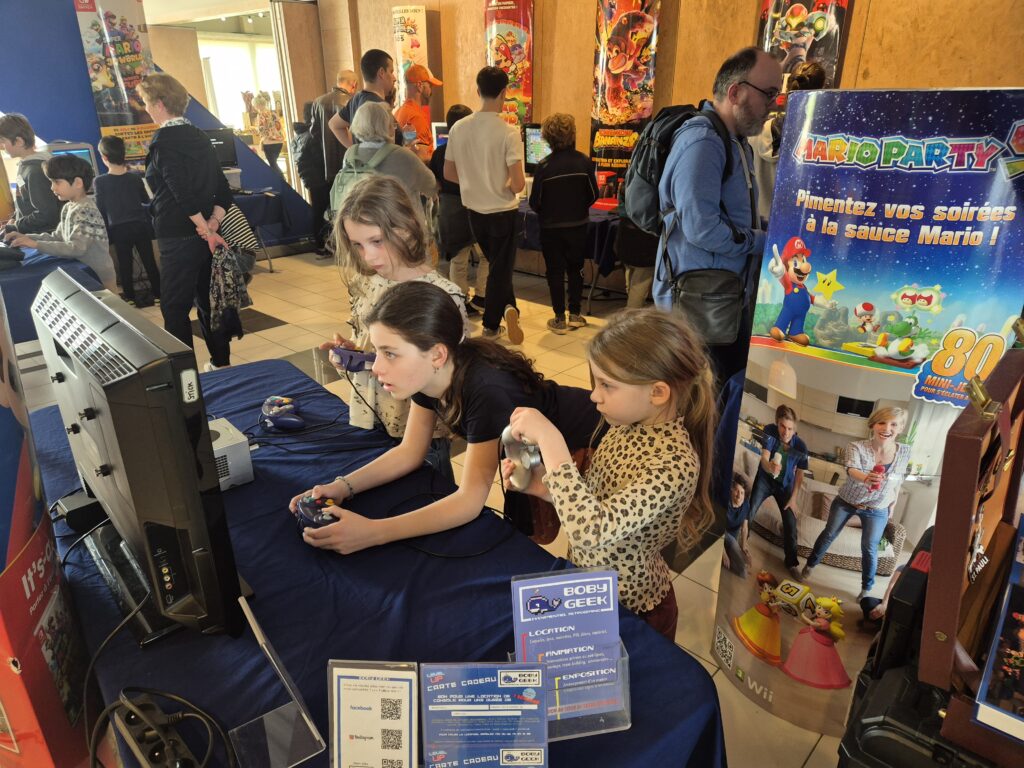 Je n’ai animé que le samedi, mais en vrai, c’était déjà très intense !!! Quel engouement et quelle ambiance aussi !!! Je n’avais pour ma part qu’une 20 aine de m2 d’alloués à mes 11 consoles (je me demande encore comment j’ai réussi à faire tenir tout ça dans un si petit espace !!? :p )